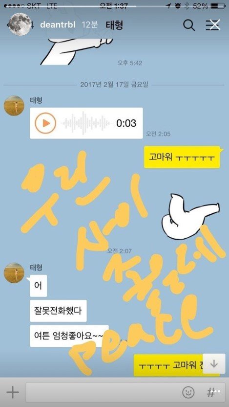 왜 댓글 삭제됐지? 라이언 맥긴이구 출판사에서 태형이 딘님하고 카톡한거보구 책주고싶다고 하셨음
