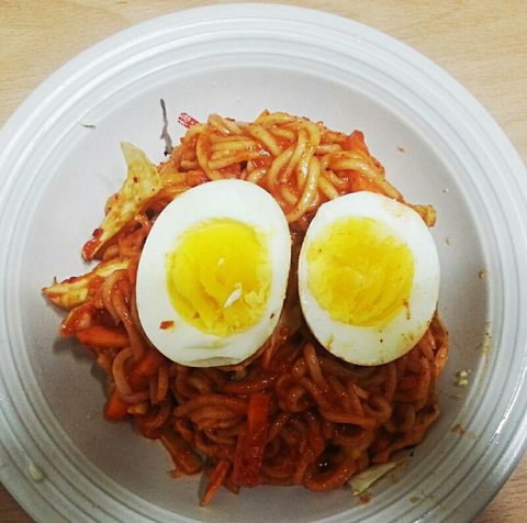 분식집 쫄면만큼 되질 않은 면이 붙음.ㅠㅠ