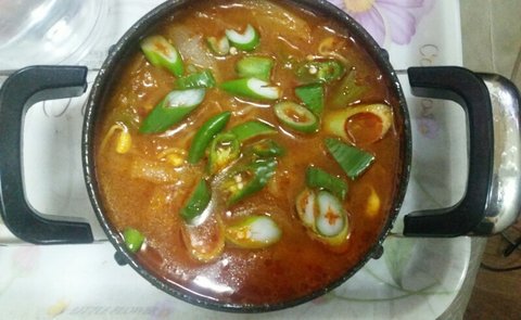 그리고 홍합탕은 홍합을 잘 씼어서 소금만 약간 넣고 파 넣고 청양고추 넣어서 끓임.