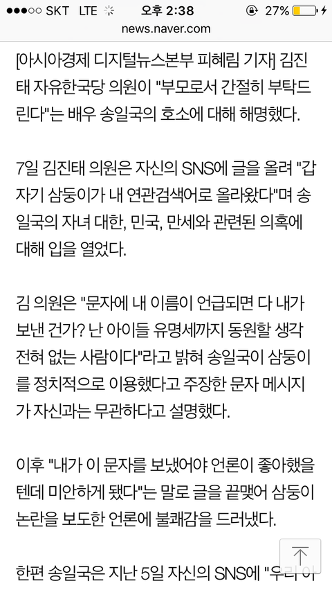 이게 뭐하는 짓이냐?!!(송일국 트위터)