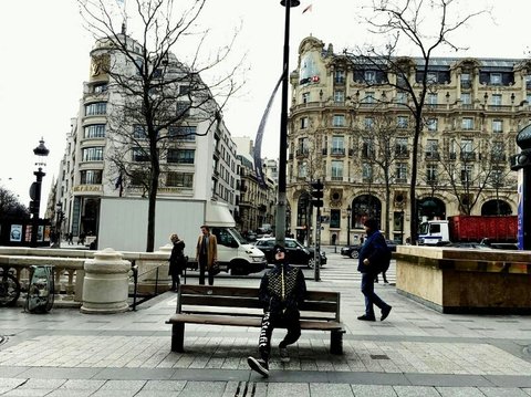 샹젤리제 루이비통 앞 벤치에 오깔롱♡