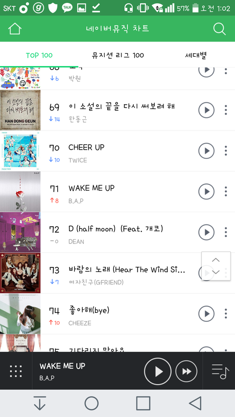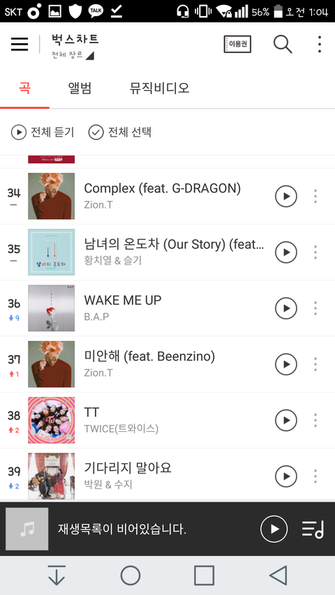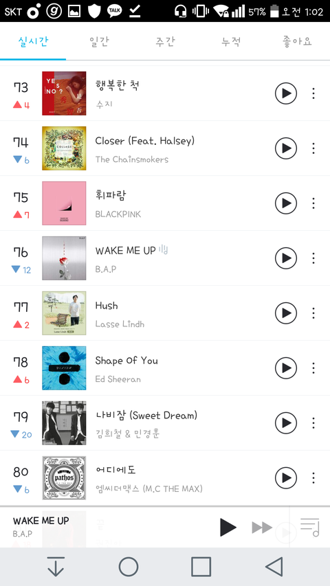 조금씩 떨어져도 차트인하고 있으니까 새벽때 바짝 끌어올리자!