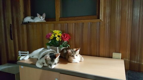 마지막으로 창가에서 엄마를 기다리는 세 아가들이에요~~