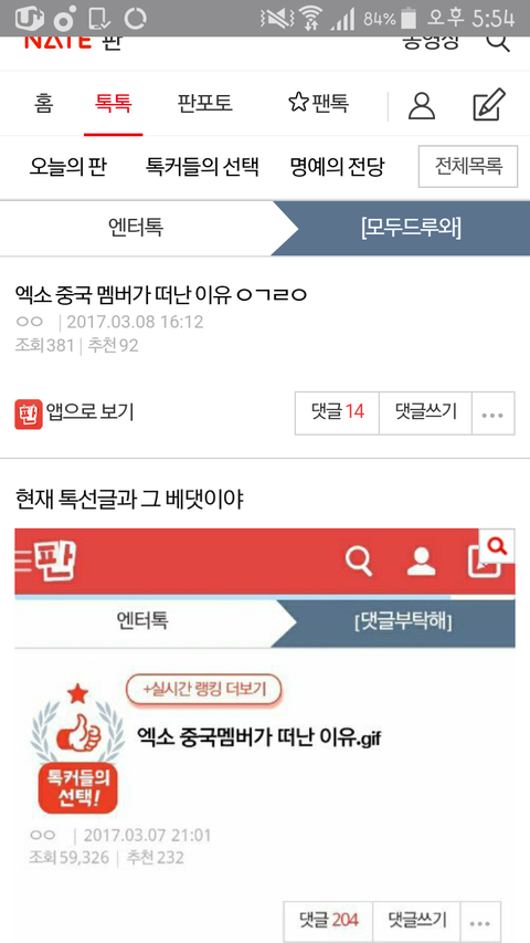 팬톡 검색 보기