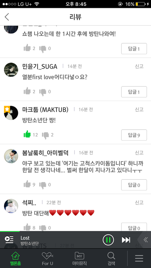 우리 멜1론리뷰창에 연예인이 댓글달았음 개신기