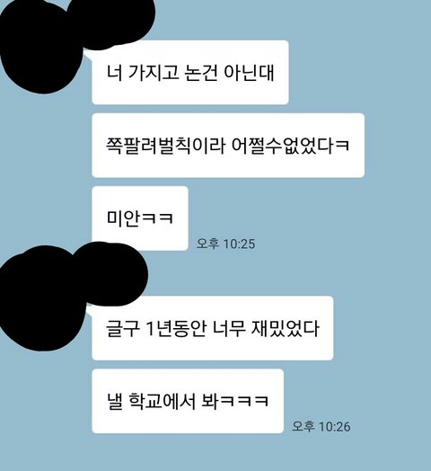 같은학교에 같은반, 심지어 짝인데 낼 학교에서 보자고하네^^;;;;;;;;; ㅋㅋㅋㅋㅋㄹㅇ 화나네... 얘 어떻게 하지.. 얘들아 조언 좀.. plz.......ㅈㅂ.....