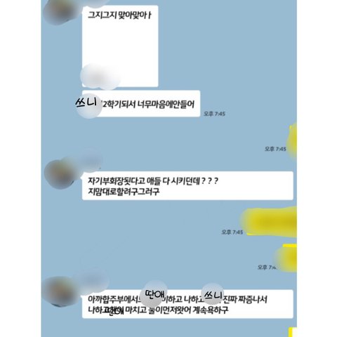 다 내 뒷담이더라? 내가 부회장이라 멋대로 시키고, 자기한테 무시하는 눈빛을 보냈다고.