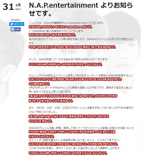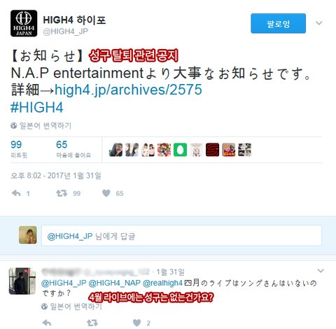 얼마 전에 하이포 리더이자 멤버인 성구의 탈퇴 소식이 있었음