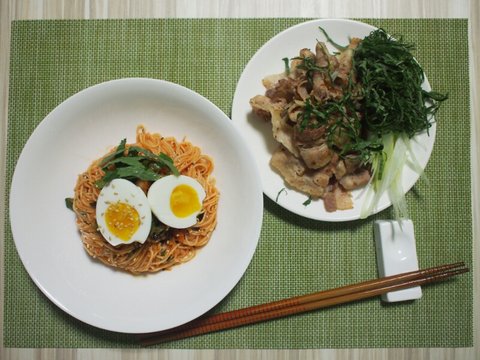 비빔국수와 대패삼겹살 볶음을 만들어 보았습니다.