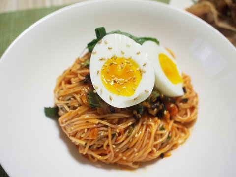 비빔국수 양념장은 고추장 1 간장 1 설탕 0.5 고춧가루 1 김치 2 참기름과 마늘 조금씩.