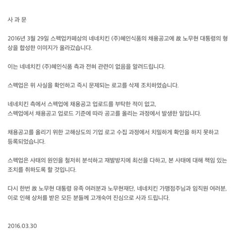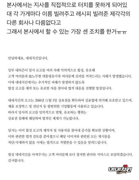 일베논란과 네네본사는 관련이 없다고 합니당