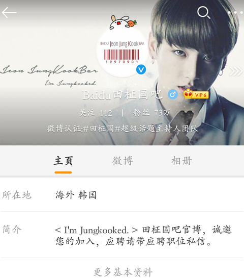 바이두 전정국 빠팔로잉 112 팔로워 73만.....소개: 전정국 빠 official웨이보|......여기까지만 간단 번역