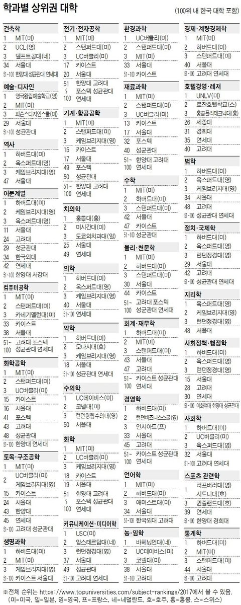 세계에서 각 학과별 최우수 대학랭킹.jpg
