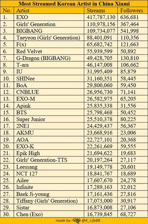 중국의 아이돌 엑소 스트리밍 압도적1위