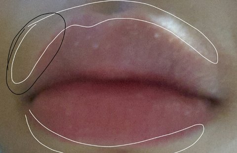 검정부분은 더 심해... 진짜 화장하면 나 여기 각질 짱많아요 ~ 여기 입술 텃어요 다보여줌... 덧바를수록 그부분만 까매지고..