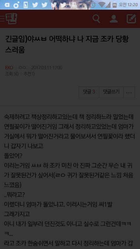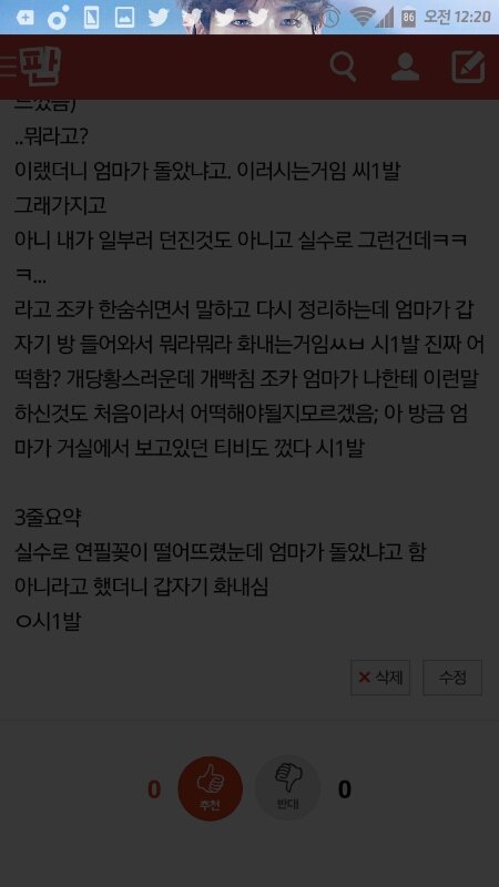 물론 1명도 모르겠지만 이거 내가 아까 쓴 글인데 ㅅㅂ 진짜 엄마땜에 돌아버리겠음