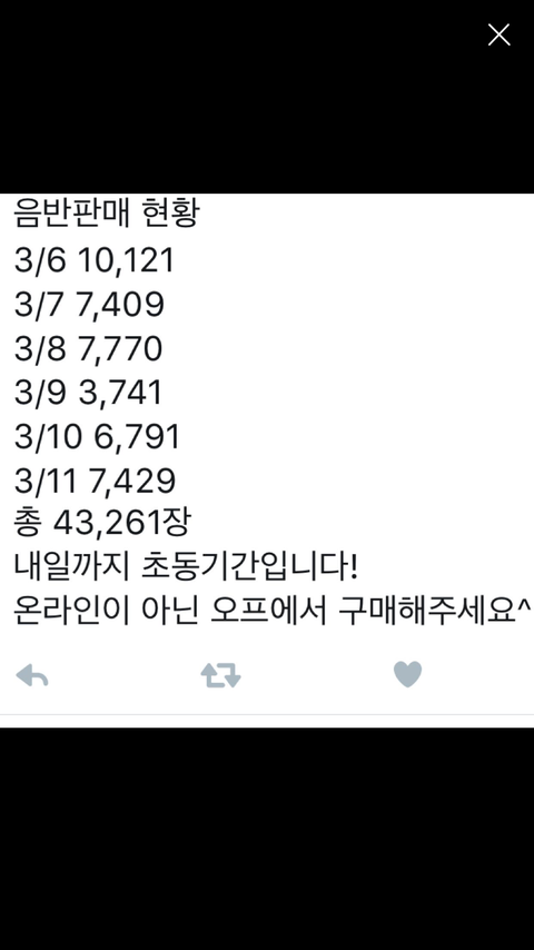 오늘 이정도터지면 5만장넘어서 비투비역대초동갱신이니까 일욜오늘 오프라인 핫트랙스에서 보이는 남은 재고있으면 싹쓸이 구입하자 음방1위뿐아니라 이번에 팬싸도별로없이 역대로 추이좋은데 5만못넘기면 진짜 아쉽잖아 연말 가온시상도 생각하면서 한장이라도 더 샀으면 좋겠어 우리오늘 마지막날이니까 화이팅하자