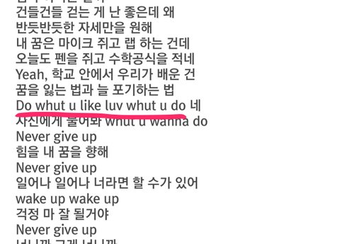 +do what you like and luv what you do라는가사는 never give up 가사래!!!
