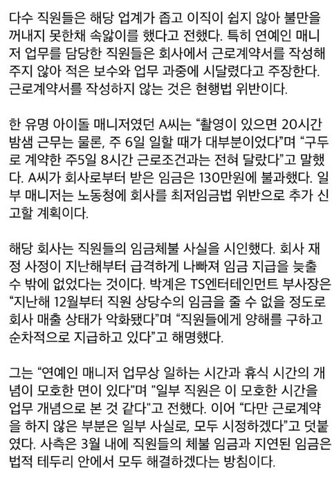 우리가번돈 다어디갔냐 진짜 욕나와 아니 일안하는이유도 월급도안주는데 일하겠냐고ㅋㄱㄱ 애들이번돈 다적자매꾸는거아니야? 미쳤어ㅋㄱㅋㄱ 애들한테 줄돈도 없을거아니야 지금애들이 돈도못받는데 일하고있네 티에스 진짜정신못차렸다진짜