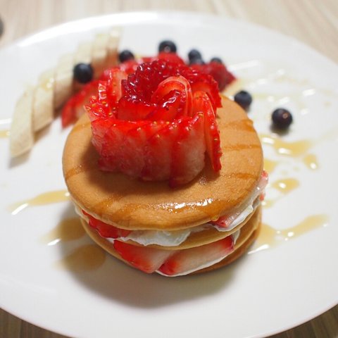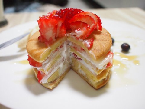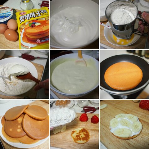 줄 사람은 없지만 핫케이크를 구워보았습니다.