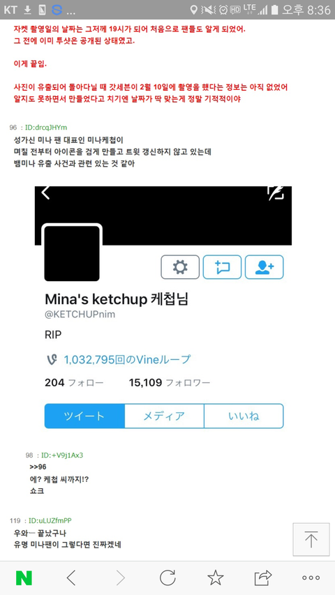 + 그리고 이건 몇일전에 미나 탑시드 홈마가 활동 접었는데 미나유출사건이랑 관련있다고 추측중임
