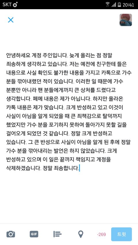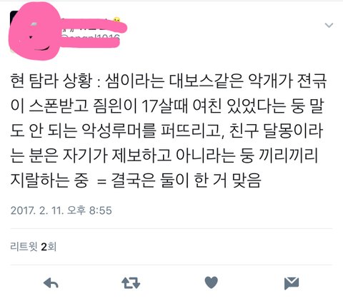 이미 상황도 다 끝난걸로 알고있는데 루머유포한얘 사과문까지 썼잖아ㅋㅋㅋㅋㅋ 진짜 미자랑 스폰 루머 퍼트리는애들 개때리고싶다