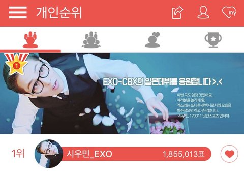 어제자 최애돌 시우민&엑소 모두 1위>.<!!
