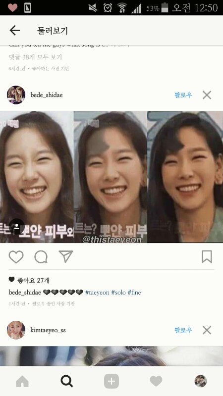 웃는 거 보면 과사랑 똑같은데? 태연팬아니고 걍 호감쪽이라 인별팔로우 해놨고 둘러보기에서 우연히 봤는뎅 똑같아보이는데? 타팬 인증가능함 태연은 어떤사진은 달라보이고 또 어떤사진은 전이랑 똑같고 그런듯