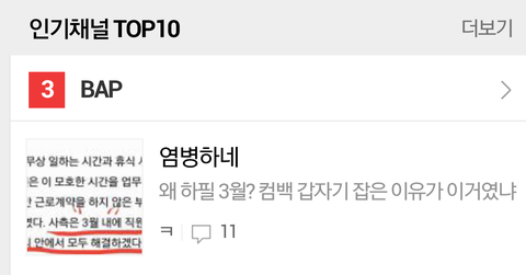 워후 팬톡3위~~
