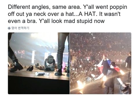 이거때문에 칠레아미들이 욕먹고있대 속옷아니고 같은각도에서 찍은건데 모자래! 모자랑 국기같은거 던진거니까 베톡이삐들은 글 좀 지워줘!