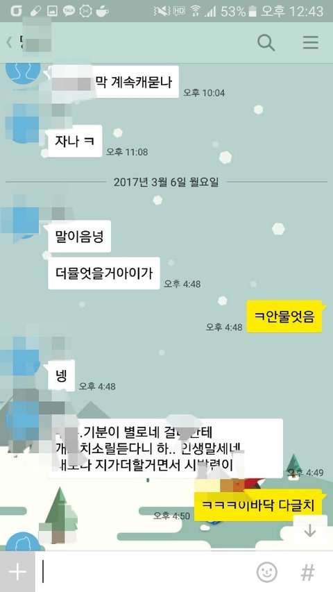 그러고 그 남자는 출근하고 저는 남자친구의 친구랑 카톡 캡쳐를 한 것을 받았습니다.