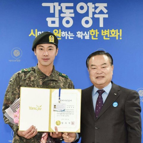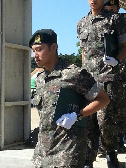 2. 2015년 8월 27일 신병 수료식에서 최우수 훈련병상 받음
