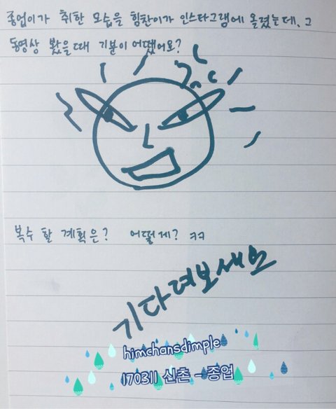 찬이가 술취한 영상 인스타에 올렸을때 기분?이라니까 저렇게 화났다는걸 그림 그리고는 복수 할 날만 기다리고 있대ㅋㅋㅋ 졸귀ㅋㅋㅋ