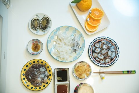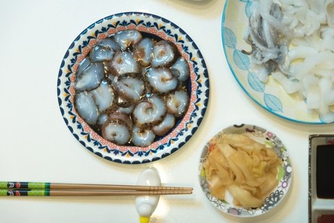 산낙지,무늬오징어회,홍해삼에 술한잔