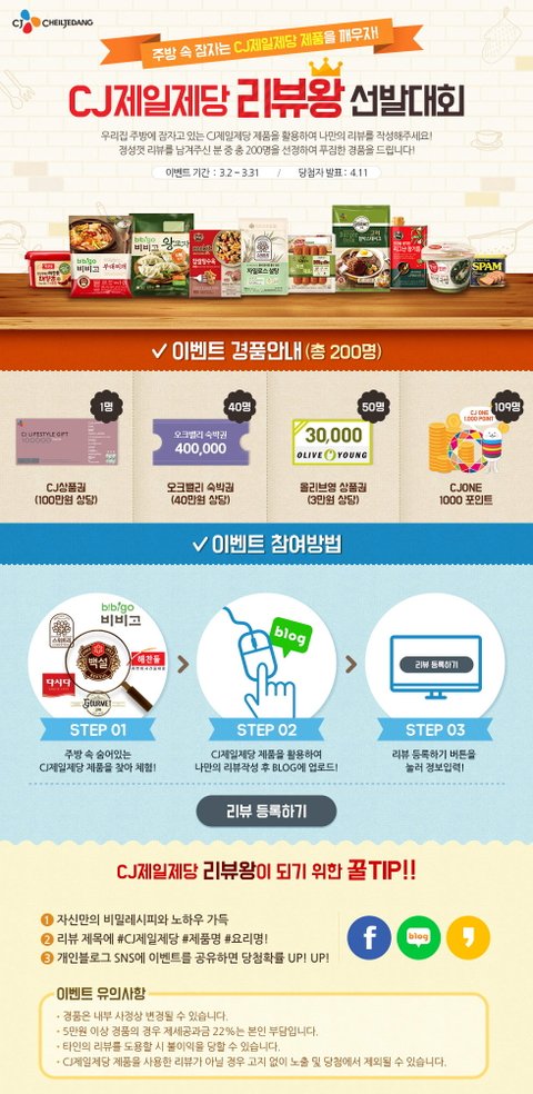 주방 속 잠자는 CJ제일제당 제품 리뷰쓰고