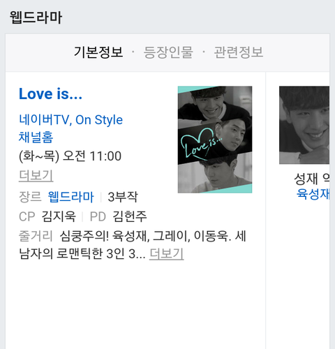 웹드라마 이름은 "Love is"고 무려 이1동욱님이랑 그레이 님이랑 같이 나와..ㅠ