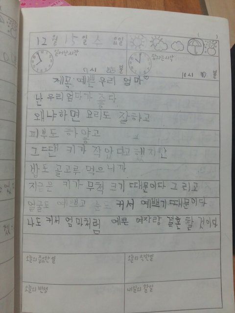 웃긴건 아닌데 뭔가 좀 순수한느낌이들어서 귀여워서 함 올려봄ㅋㅋㅋㅋ물론 허락맡고 올린거얏!!ㅋㅋ기억은 잘 안나지만 어렸을 땐 왠지 우리엄마가 세상에서 젤 예뻐!! 이런 생각하면서 자랐던 것 같앜ㅋㅋㅋ