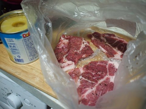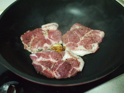목살 3장에 소금 후추 뿌려서 밑간 해두고,