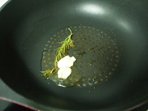 기름에 로즈마리 한개랑 마늘 으깬거 넣고 향 올려주고,
