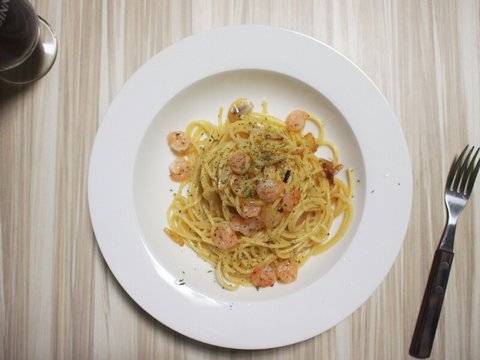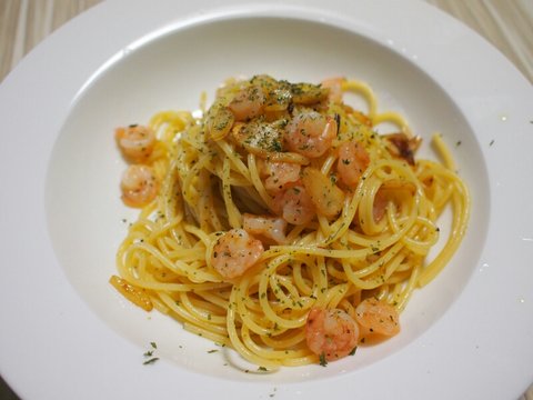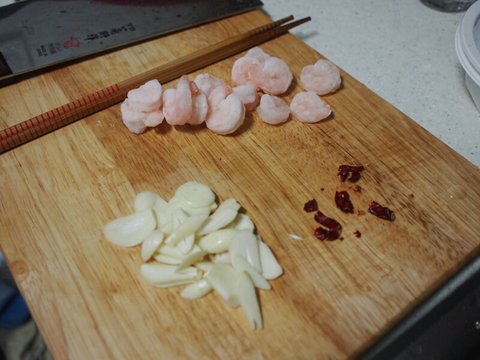 올리브유에 마늘 먼저 볶다가, 새우랑 고추 넣고 같이 볶습니다. 볶다가 면 넣고 같이 볶고 소금 후추 간.이제 부족함을 채웁니다.