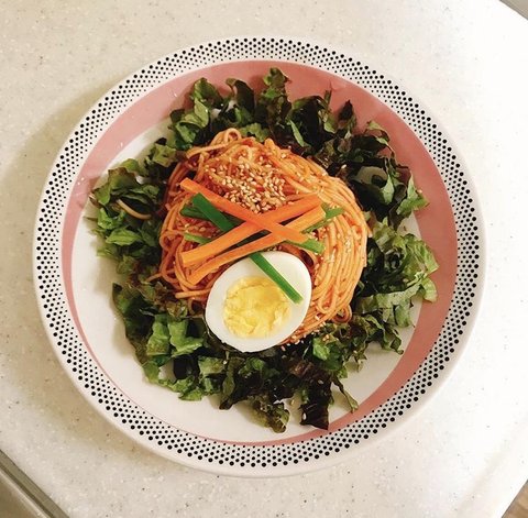 야채 얹고 오리엔탈 드레싱 왕창 쏟아부었어요 !!ㅎㅎ
