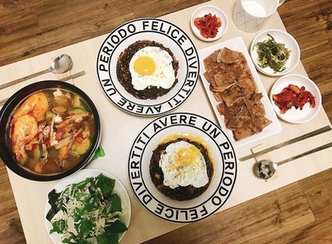 김치볶음밥 해물순두부찌개 갈비 샐러드