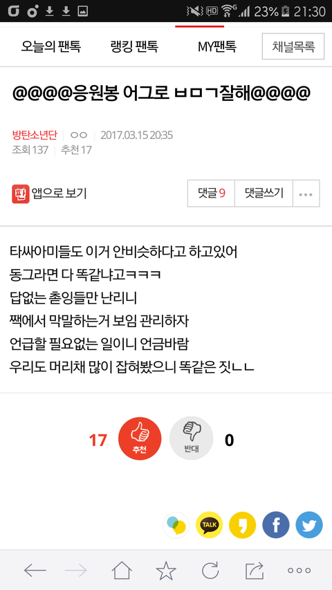 인증 가능 아미인데 글에 거론 된 타팬덤분들은 어떻게 생각하실진 모르겠지만 우리 팬톡에선 응원봉에 대해선 언급 안하기로 했으니 어그로 끌지말아줘 그리고 여자친구 컴백 축하해