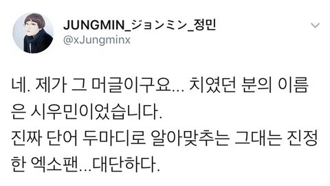 시우민한테 치이셨다는 머글분이 짹에 올린글