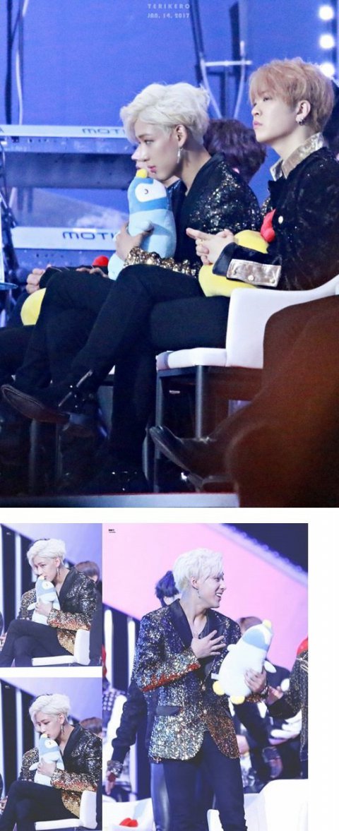 2차가공 불가능이라서 원본 가지고옴. 저날은 170114 이며 타가수 좌석에도 각각 인형을 배치해둠. 즉, 저 인형은 뱀뱀이 가지고 온것이 아니라 가수석에 미리 배치되어 있던것.