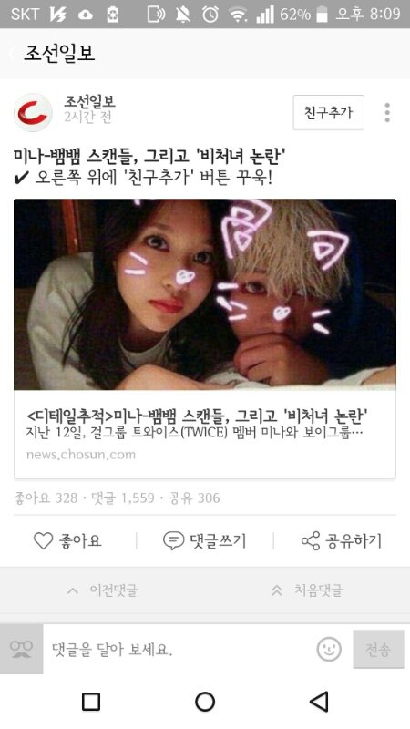 마지막은 다들 공감 해줬으면 한다. 기사 최초 유포자는 이새끼임. 근데 제목좀 보셈 ㅋㅋㅋㅋㅋ비처녀란다 ㅅㅂ ㅋㅋㅋㅋㅋㅋㅋㅋㅋㅌ 침대인지 아닌지도 모르는 사진에서 미나만 특정하게 비처녀 ㅋㅋㅋㅋㅋ 저건 너무한거 아니냐 ㅋㅋ 그냥 미나를 구르는 인간취급 하는거잖아ㅋㅋㅋ 염병할 새끼;