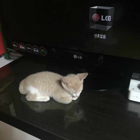 티비 앞에 누가 고양이 인형을 갖다놨어 !!!