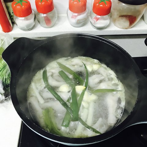 사람마다 다르겠지만 저는 쫀득쫀득 한 식감보다는 풀어지는 식감이 더 좋아서 한시간동안 푸욱- 삶았습니다. 한번 간단히 삶고 물을 버린뒤 찬물로 헹궈서 다시 끓여주세요. 두번째 끓인 물은 육수로 냄겨두셔요~