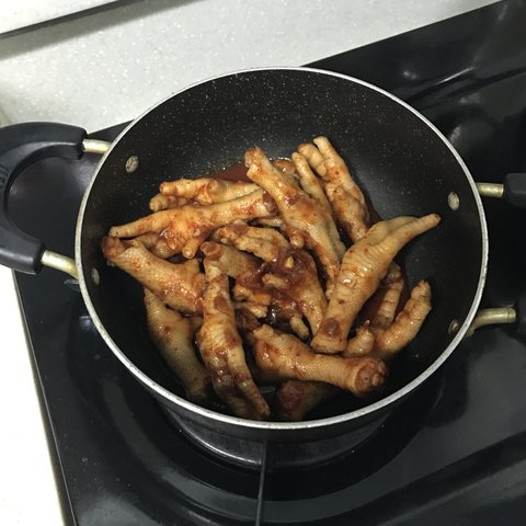 양념에 10분정도 잘 재워주세요. 닭발이 잠에서 깨지않게