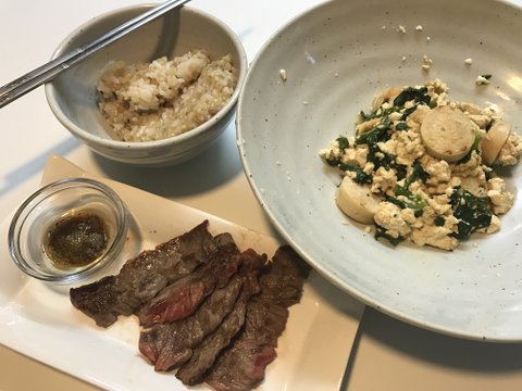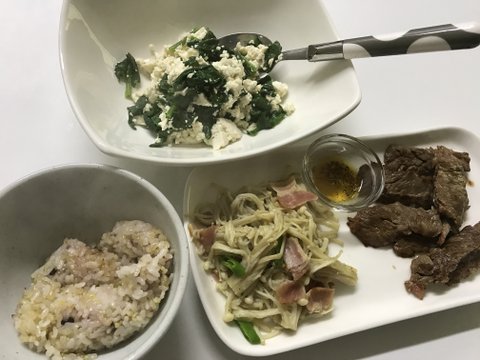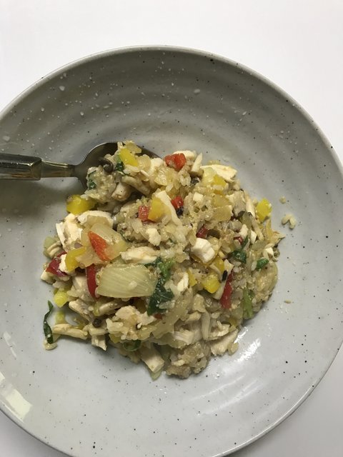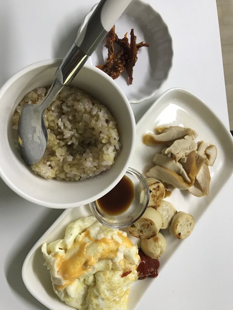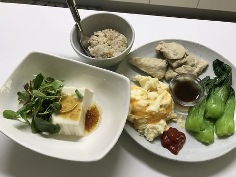 많이먹고싶을때하는 메뉴에요 밥이 20프로 나머지는 슬라이스 닭가슴살과 야채와 두부볶음밥